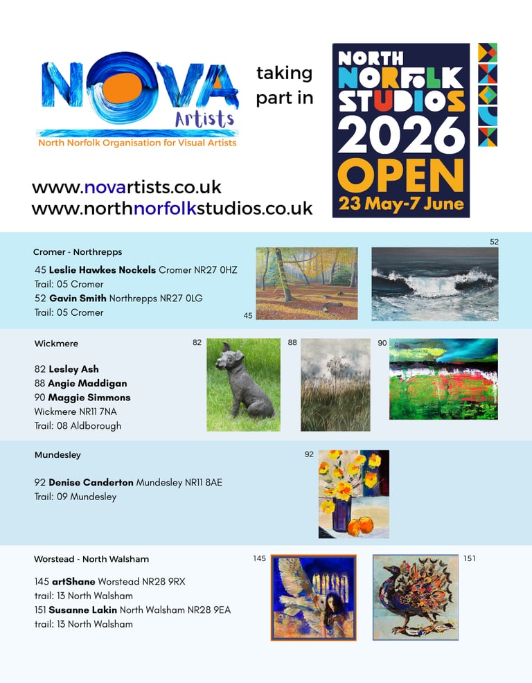 We welcome your enquiries and ideas. If you are a visual artist based in North Norfolk, join our creative community and connect with us to explore artistic opportunities in the area.